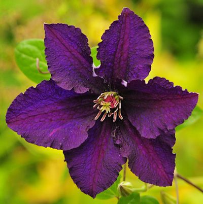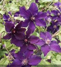 ЦВЕТКИ: очень темные, диаметром 8-12 см с 6 темно-пурпурно-фиолетовыми чашелистиками с волнистыми краями, снизу светлыми, серо-фиолетовыми