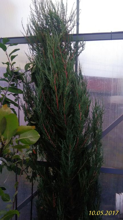 Juniperus scopulorum "Blue Arrow" - колонновидный вечнозеленый кустарник. Вырастает от 3 до 5 м высотой, в диаметре 0,8-1,0 м. В 10-летнем возрасте растение достигает 2-3 м в высоту и 0,5-0,7 м в диаметре. Плоды – сизовато-синие шишкоягоды. Хвоя ярко-голубая, мягкая, чешуйчатая. Побеги расположены плотно, прижаты к стволу. Растут вертикально вверх. Зимостоек. Прекрасно смотрится как солитер или в составе небольших односортных групп в вересковых садах и альпинариях, а также в свободно растущих миксбордерах. Способен создать прекрасную живую изгородь, которая не требует стрижки и занимает очень мало места. К составу почв молотребователен. Предпочитает свежие хорошо дренированные почвы. Подходит для выращивания в контейнере. Можжевельник лучше высаживать на солнечных местах, допускается небольшое затенение.
