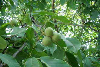 Окраска плодов: ореха - коричневая.