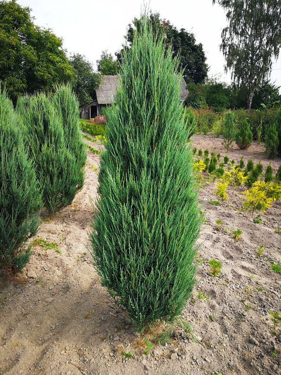 Juniperus scopulorum Skyrocket - узкий, колонновидный кустарник с густыми прилегающими побегами. Форма кроны вертикальная. Высотой до 6 м и 0,8-1 м в диаметре. Хвоя мелкая, чешуйчатая, серовато-голубого цвета. Зимостоек и морозостоек. Рекомендуется для небольших приусадебных садов как вертикальный элемент в растительных композициях. Требования к почве и влаге средние. Растет на солнце, не переносит тень, переносит высокие температуры, засухоустойчив, относительно устойчив в условиях городской среды, ветроустойчив.