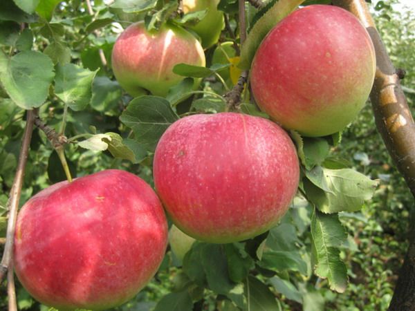 Окраска плодов: блестящая зеленоватая с покровной в виде красного размытого румянца и крапин вишневого цвета.
